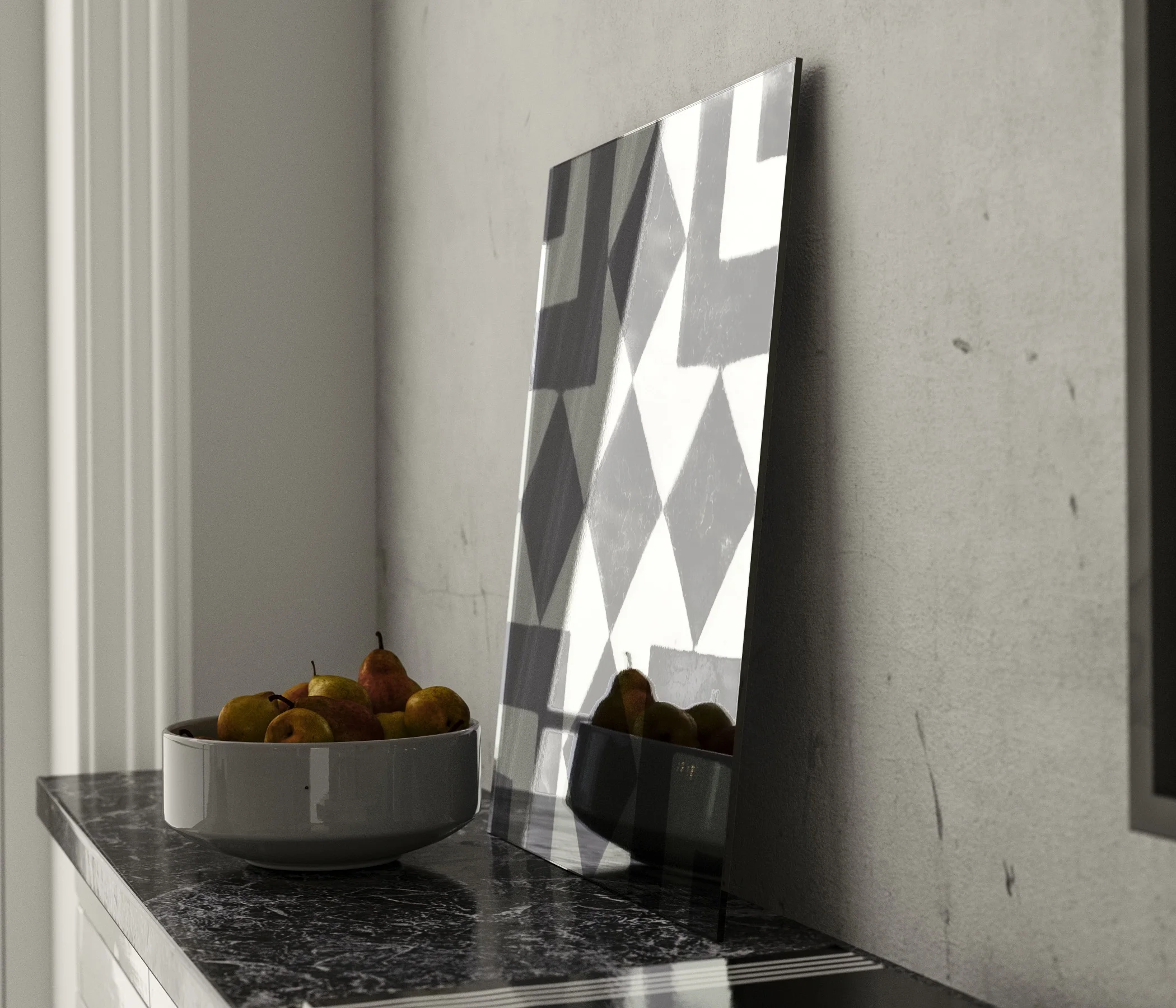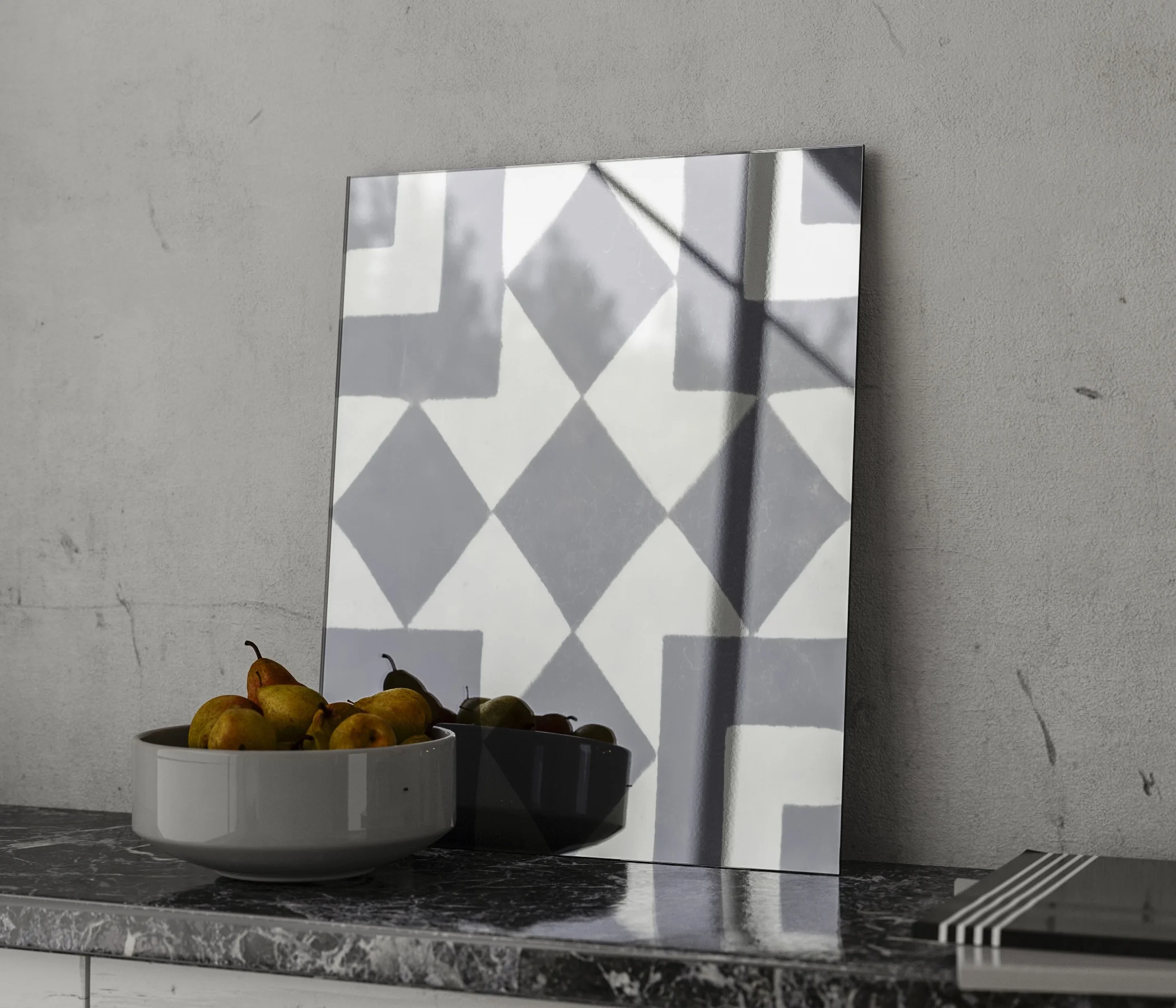 Studio photo of blue checked mirror swatch by Color & Mirror
